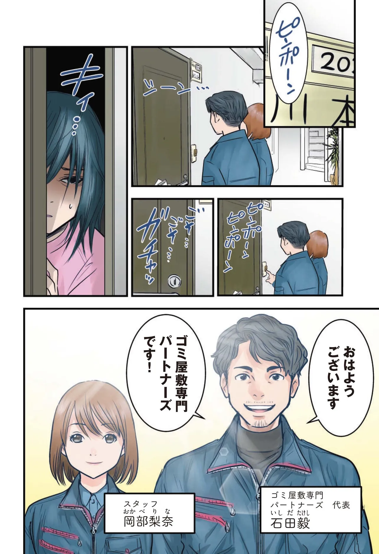 YouTube30万人超えをした「ゴミ屋敷専門パートナーズ」をコミック化した「ゴミ屋敷専門パートナーズの現場日報 レベルMAXの人生お片付け」 (漫画:もづこ、監修・著:ゴミ屋敷専門パートナーズ)から全6回連載でお届け。今回は第1回目となる。