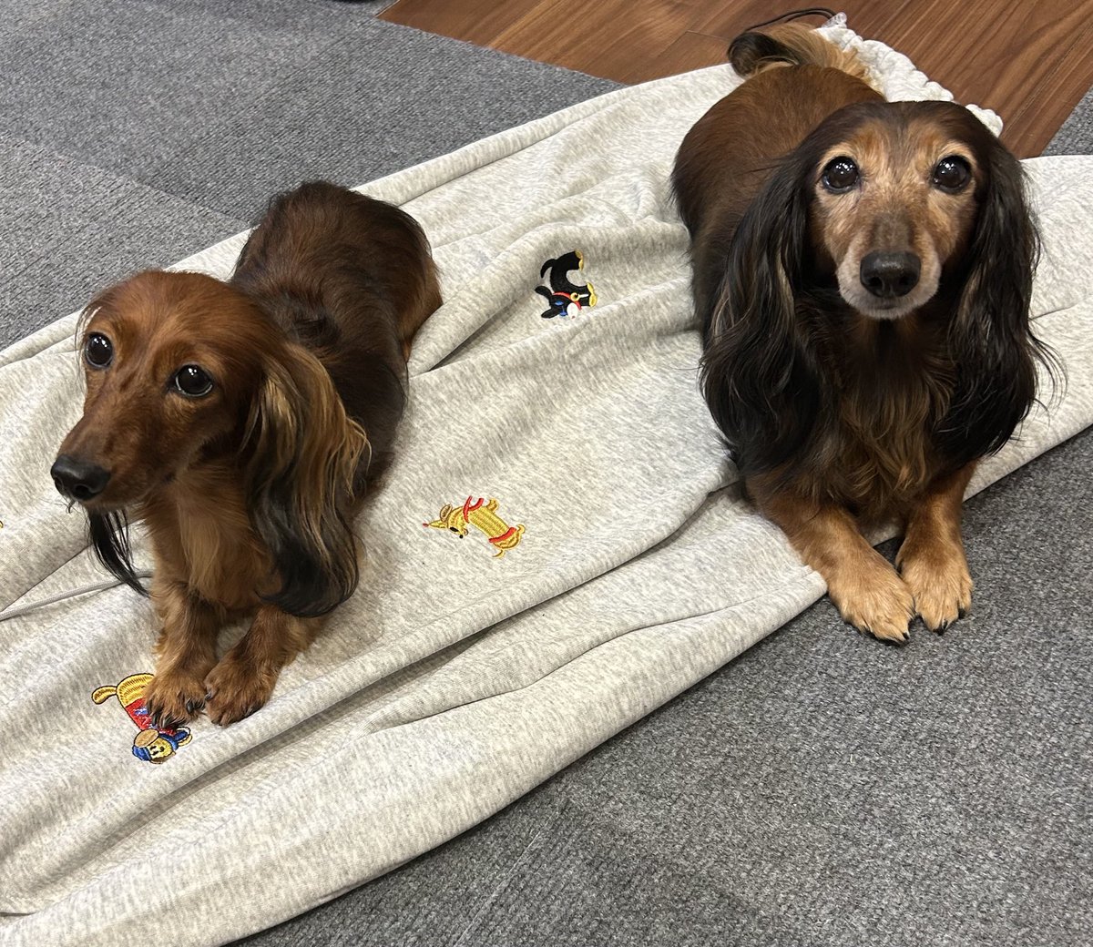 ダックス柄ジャージーパンツ占領される💦#ピグマリオン #ダックス好き #ダックス柄 #ワンコ好き #橋本良亮 さん pic.twitter.com/UyMr0mF9uv