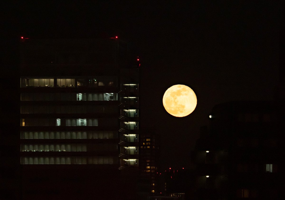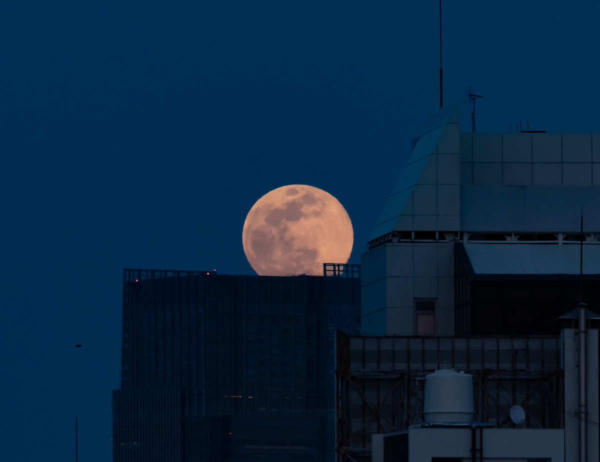 満月の出@東京 今日のムーンハントは冷えたぁ #満月 #月の出 #スノームーン https://t.co/2HhgtIqFDc