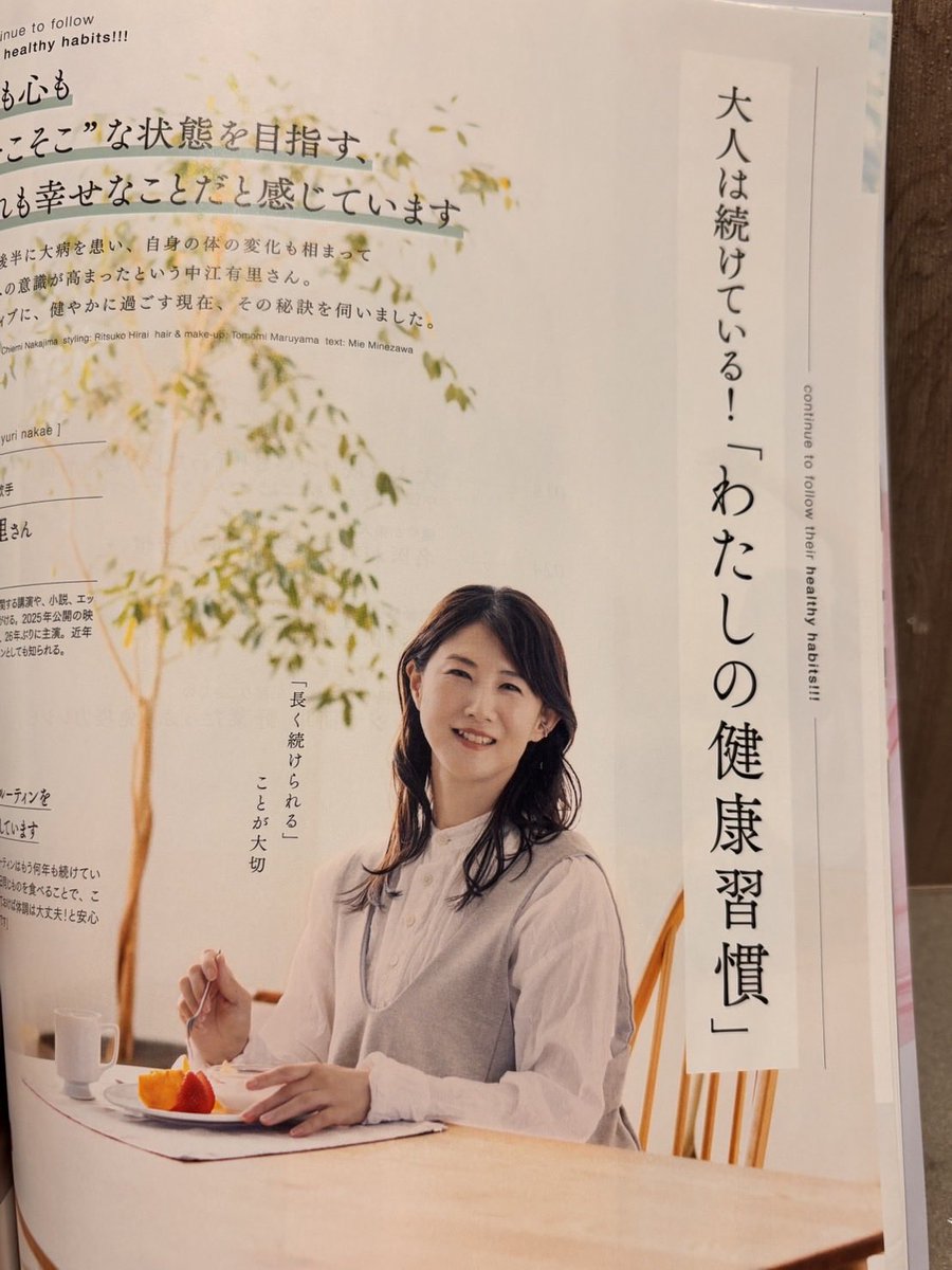 大人のおしゃれ手帖(宝島社)2月号 特集「目指すは“揺るがない体” 確かな免疫力を手に入れる」 「大人は続けている!『わたしの健康習慣』」にて、中江有里のインタビューが掲載されています。 免疫力UPのために実践している、愛用アイテム3点もご紹介。 ぜひご覧ください。 https://t.co/PGwT6O0hpW