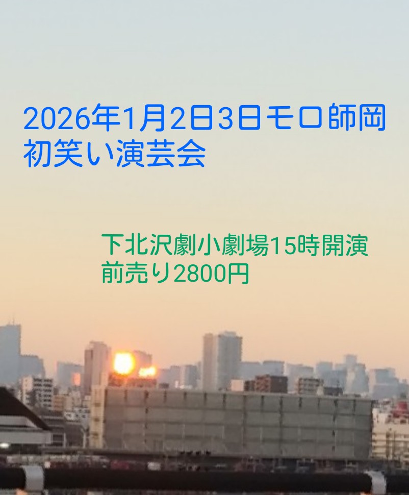 モロ師岡初笑いライブ来年で9回目。 良い年になります様に笑って新年をお過ごし下さいませ。 2026年1月2日3日 下北沢「劇」小劇場 03-3466-0020 開場14時半/開演15時 前売り2800円/当日3000円 お問合せオレガ03-6427-3847(12時~17時) メールmoromoro_info@yahoo.co.jp X.facebook.モロ師岡 https://t.co/hLuCqjuGV9