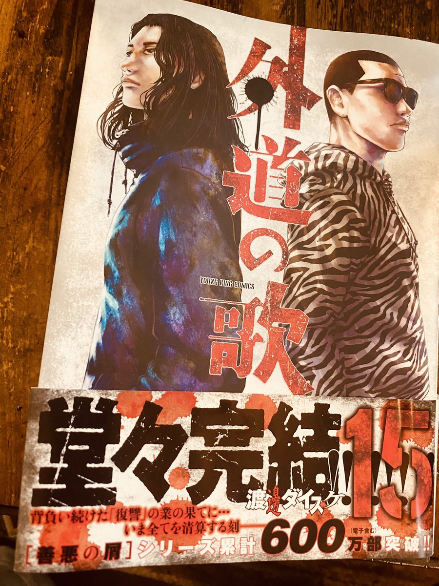#渡邊ダイスケ先生 大好きな 外道の歌、善悪の屑 の原作者さん 雄也のお引き合わせで お会いする機会を頂きました。 そして 外道の歌15巻 完結 読ませて頂きました。 泣きました。 泥の中に咲く蓮の華の様な物語 https://t.co/eGlprjl5gY