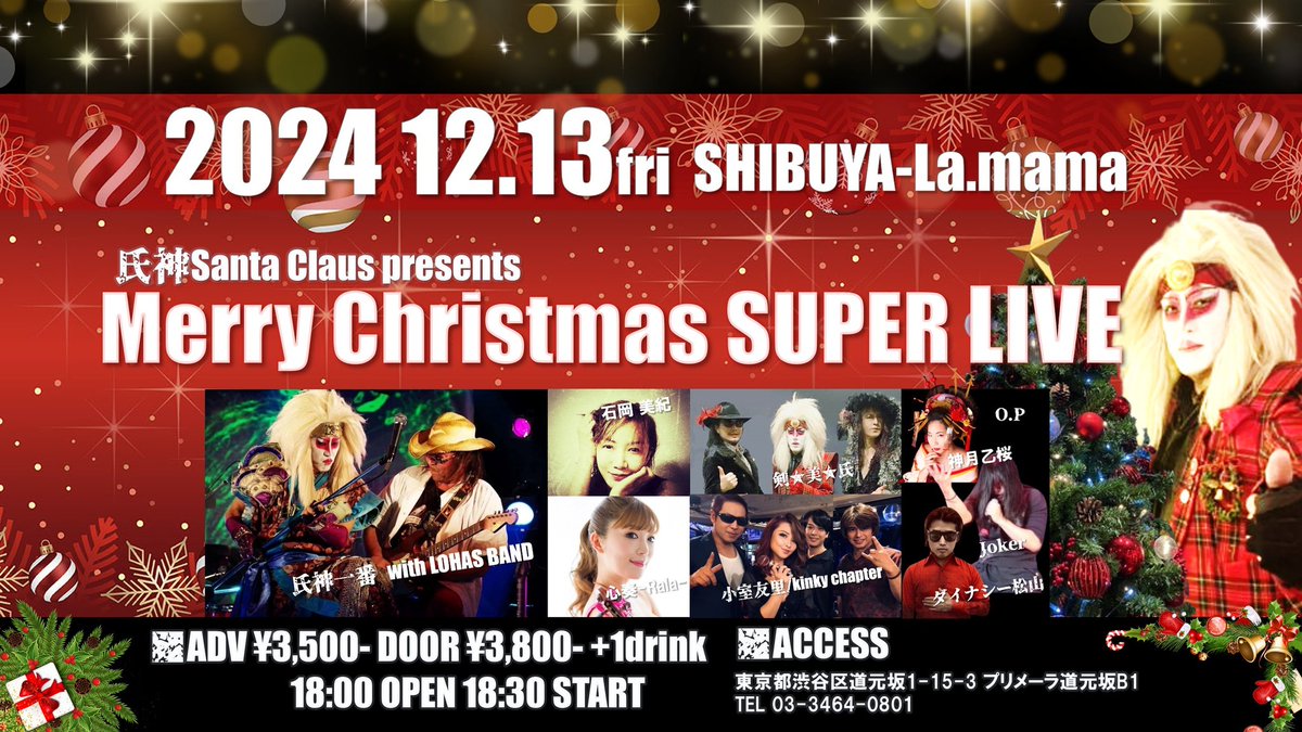 今年最後の大立ち回りの クリスマスライヴ!必見落着! 皆で盛り上がりませう🎵🤭✴️ #クリスマスライブ #氏神サンタのクリスマス #石岡美紀 #心奏 #氏神一番 https://t.co/rr0afO36Up