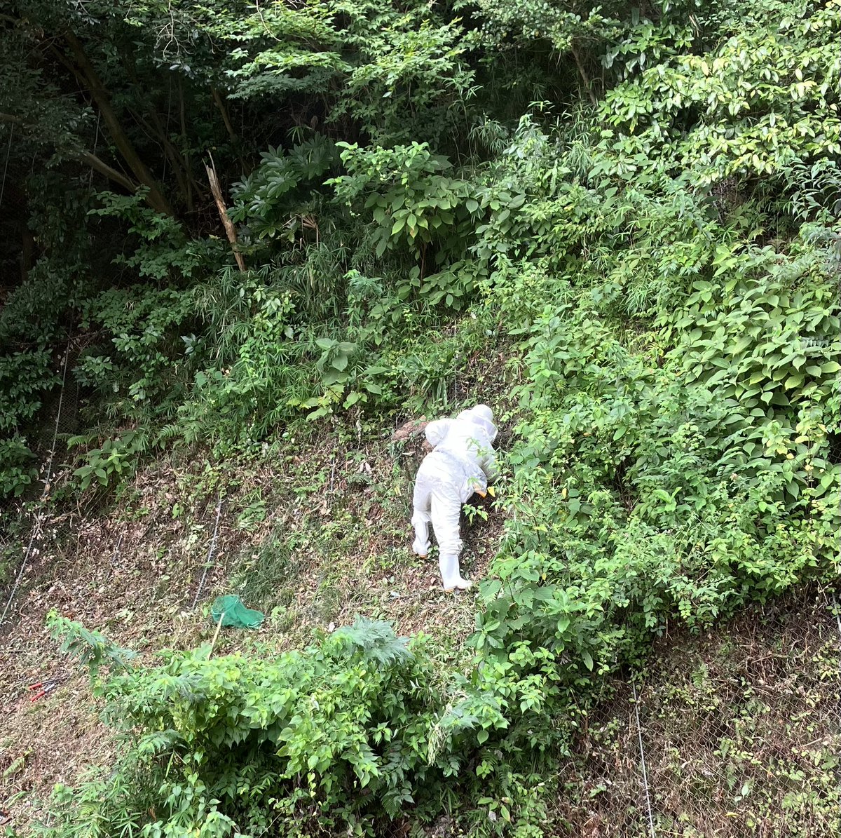裏山でスズメバチ発生! 巣を見つけて駆除してもらいました。 そこそこの大きさだったようでひと安心! https://t.co/sTos1vb73q