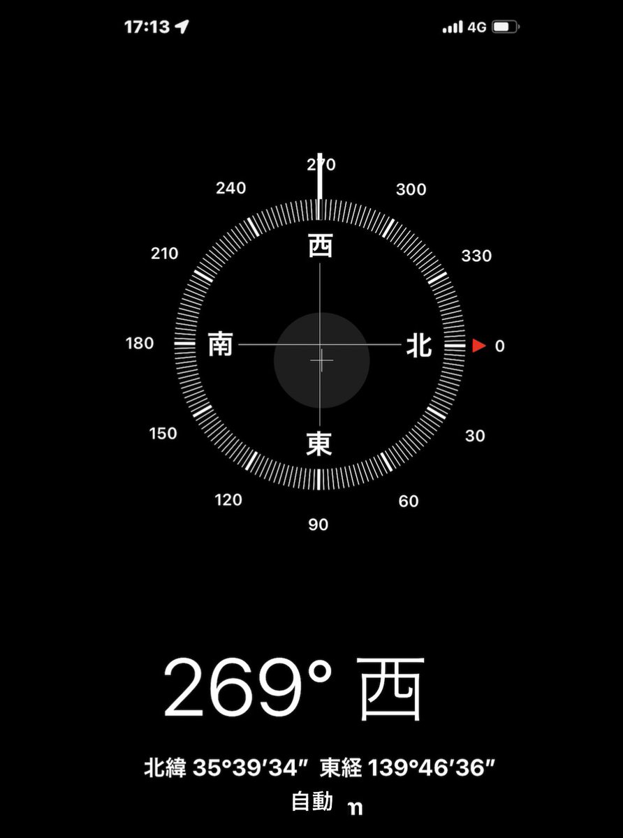 いま、月の方向に磁石向けたら、