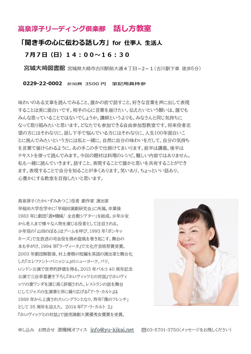 問合せ&申込 info@yu-kikai.net#高泉淳子#宇野千代子#悲しみの果て pic.twitter.com/CRXB6seXnk