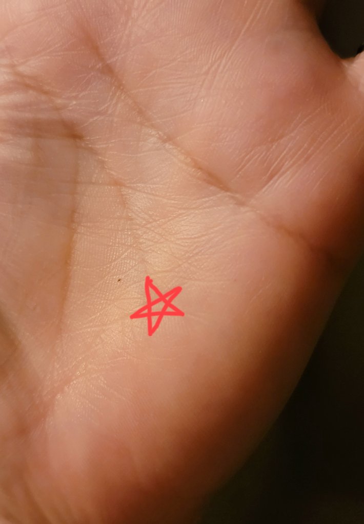 昨日 寝室のライトで見つけてなんか星っぽくない☆?ってテンション上がったうっっすらした皺🤣 上手く写ってないけどwあ、近くの黒い点はゴミ🤣 pic.twitter.com/H4L41E1QfJ