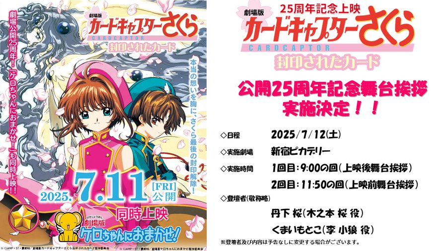 劇場版「カードキャプターさくら 封印されたカード」 公開から25年…だと?! 25年前の自分の芝居か… み、見たいような怖いようなでも見たいような/////← 7月11日公開🌸 お近くの方、是非🌸🌸 #カードキャプターさくら #ccsakura https://t.co/5DwkNhyyAh https://t.co/RkG4nUN9cj