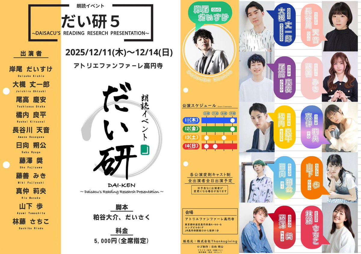 朗読イベント・だい研5 チケット好評発売中!