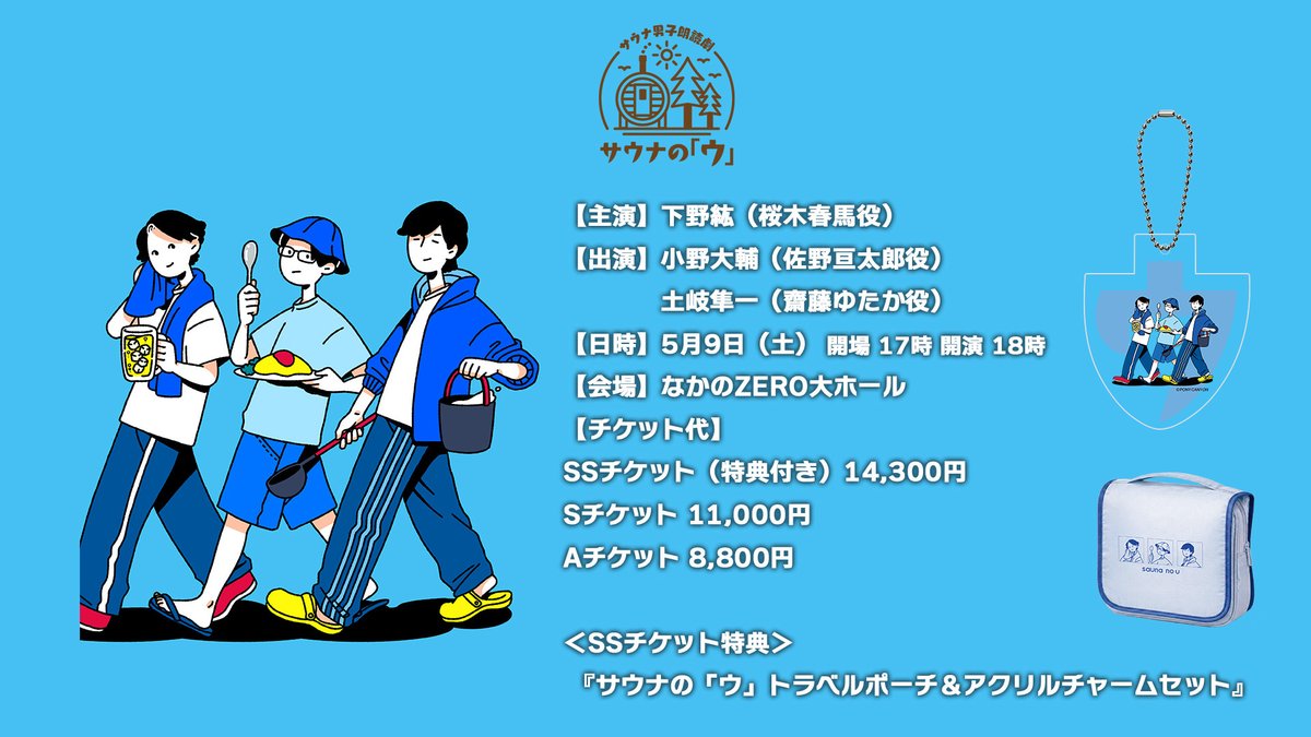 \🎫一般先行(抽選)受付開始!📣/ #下野紘 朗読祭 「サウナの『ウ』〜桜木春馬編〜」 📅2026年5月9日(土) 開場 17:00/開演 18:00 📍なかのZERO大ホール ✅申込受付期間 ~2026/04/21(火) 23:59 まで 🔻お申込みはこちら https://t.co/SZAidtjH2h 🔗イベント詳細 https://t.co/VnB1ywEk3h https://t.co/vaAiqfuZcx