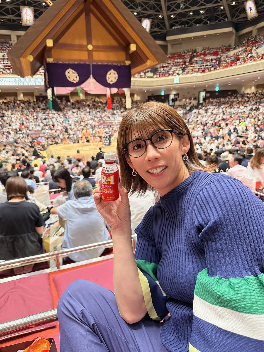 取組みの合間に 一息ついてR-1✨ 生観戦はめちゃくちゃ迫力あって 興奮するー😤楽しかったー😆✨ みなさんも体調管理には気をつけて 良い週末をお過ごしくださいね🤗 #大相撲観戦 #R1 #アンバサダー https://t.co/5nvl5BdL8K