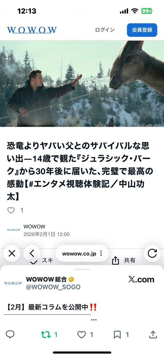 皆様、是非お読み下さい。#WOWOW #コラム #note #ジュラシックワールド #マクドナルド #中山功太https://t.co/5W6QQT6hCi pic.twitter.com/5LUVPGLW07