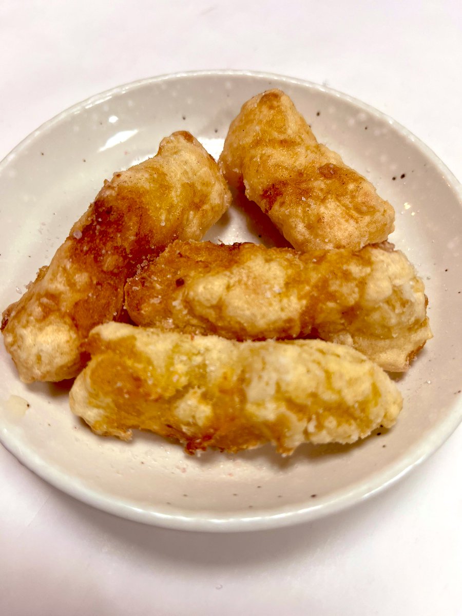 発明した‼️ おせちで残った栗きんとんに片栗粉つけて揚げたらめちゃくちゃ美味しいw 塩かけると、なお良し‼️ https://t.co/BCSUg7dxQG