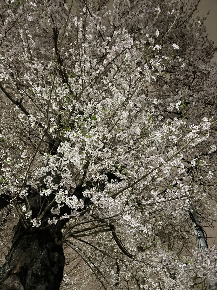 お仕事帰りに撮った桜がほんのりピンクで可愛い💕🌸