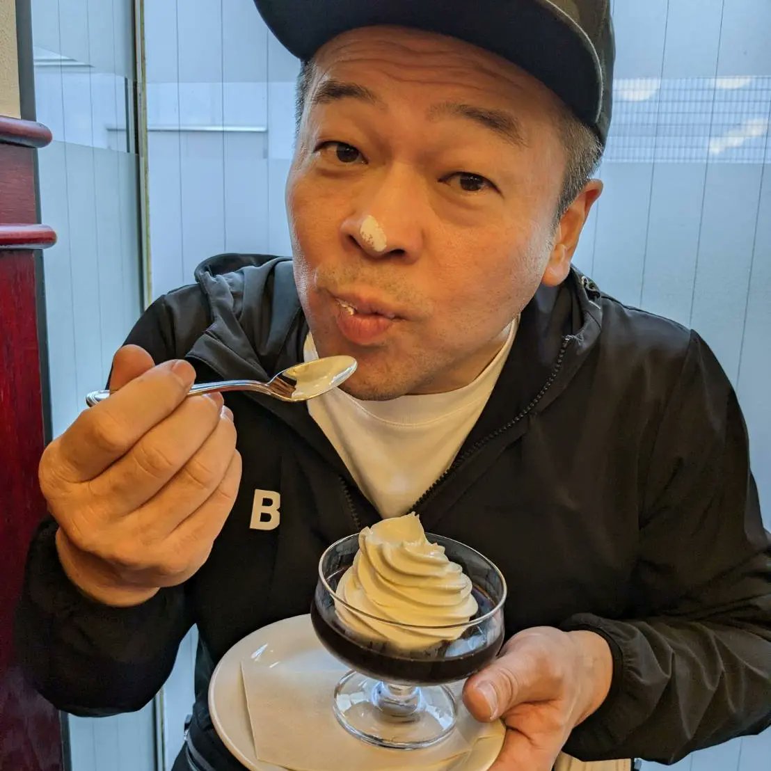 バツ1おじさんとバツ2おじさんがベローチェで久しぶりに再会しました^_^ ふじきおじさんに歌う時のビブラートについて教わりましたw おしまい。 https://t.co/QuPlxT8htj