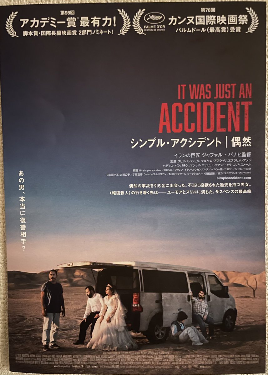 イランの巨匠ジャファル・パナヒ監督作品 『シンプル・アクシデント/偶然』試写会へ。 抑制された語りの奥に、計り知れない強さがある。心に深く問いかけ続ける本当に素晴らしい作品でした! 監督、キャスト、スタッフの皆様に心からの敬意と拍手をお送りしたいです。 5月8日より公開。ぜひ劇場で。 https://t.co/Z5RgD5kcou