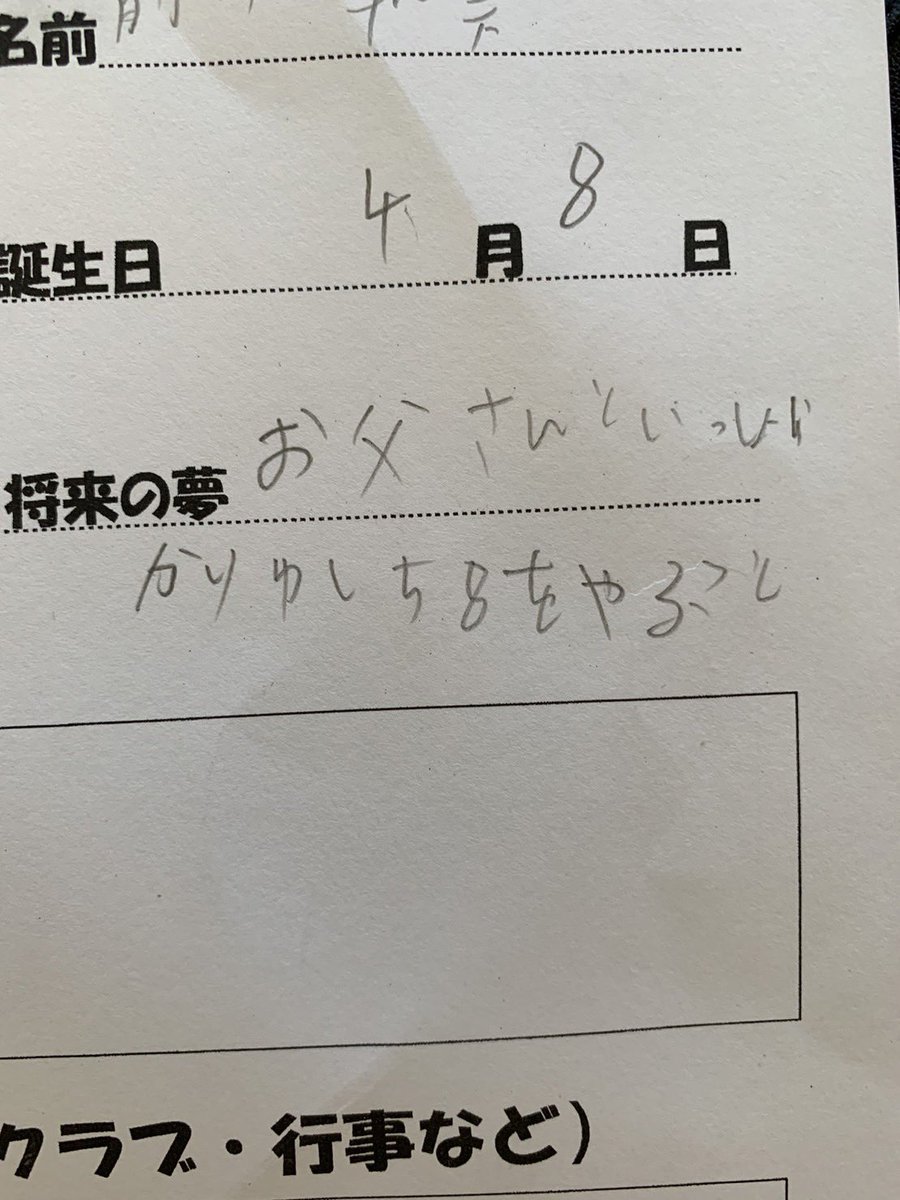 妻が送ってくれた写真。 息子よ、君の将来の夢が愛おし過ぎるぞ! 帰ったら強めのギュウさせてくれ🦍 https://t.co/NXrsLEn2bw