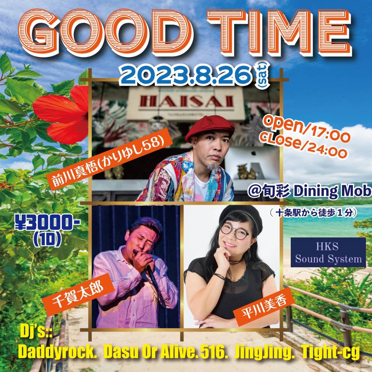 8月最後の土曜日は東京で‼︎ 2023.8.26(SAT) #旬彩_Dining_Mob に出演します🦍 #GOOD_TIMe 夏の遊び場にめんそーれ🏝 Act #平川美香 #千賀太郎 #前川真悟_かりゆし58 Dj's #Daddy_rock #Das_Or_Alive #Dj516 #JingJing #Thigt_cg https://t.co/FSk5fVYhul