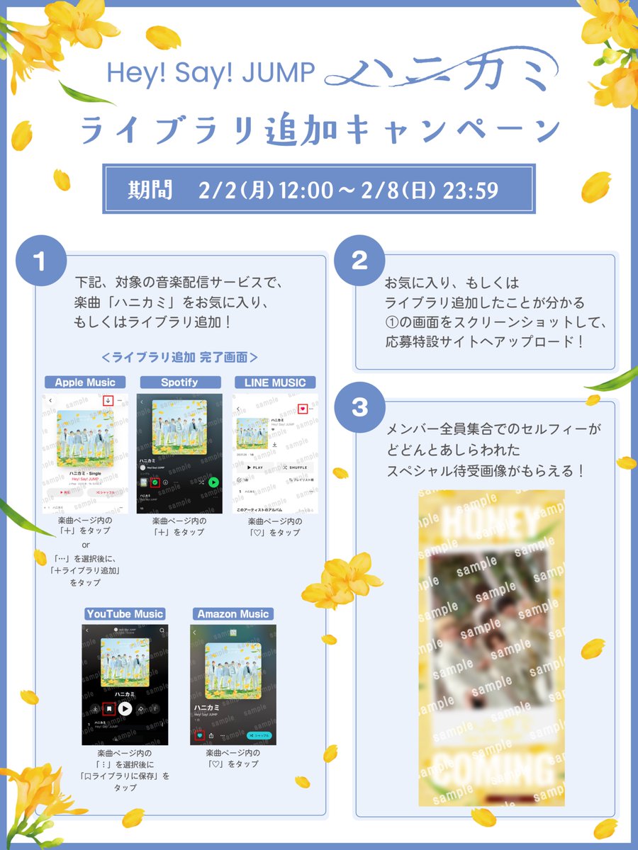 // ハニカミ ライブラリ追加キャンペーン🍯 \\ 「ハニカミ」をお気に入り・ライブラリ追加で、 メンバー全員でのセルフィースペシャル画像をプレゼント🎁 Streamingでも甘い恋して、ハニカミましょう☺️ 目指せ!ハニカミ超旋風🌪️ ▼応募特設サイトはこちら! https://t.co/iUA3mX1vuo https://t.co/5F4HSyiB01