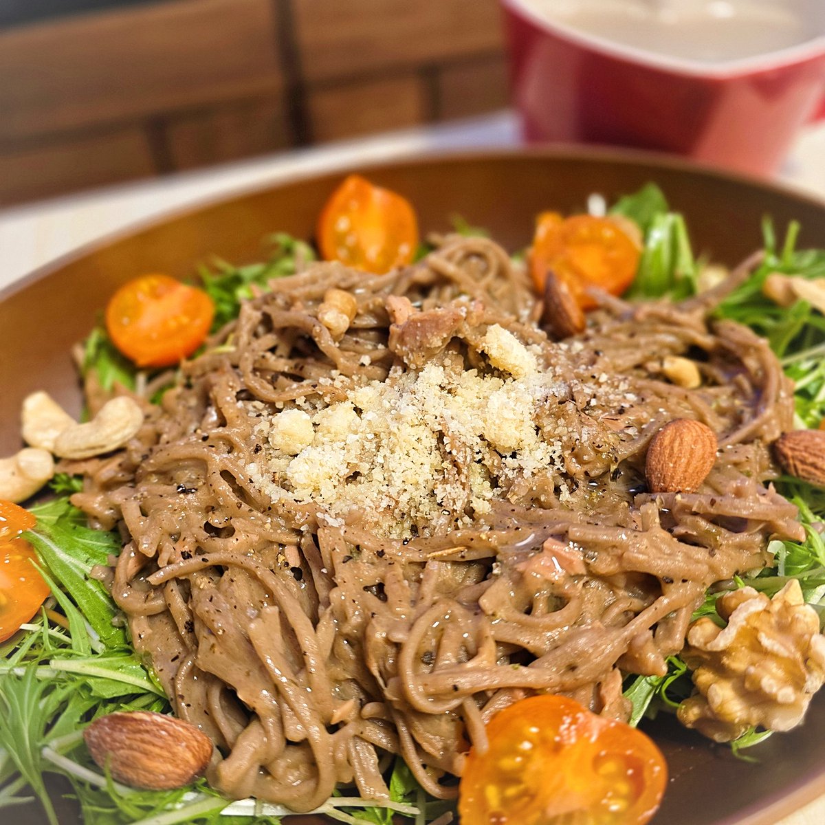 御飯炊いてなかったから十割蕎麦でレモンクリームパスタ風お蕎麦♡