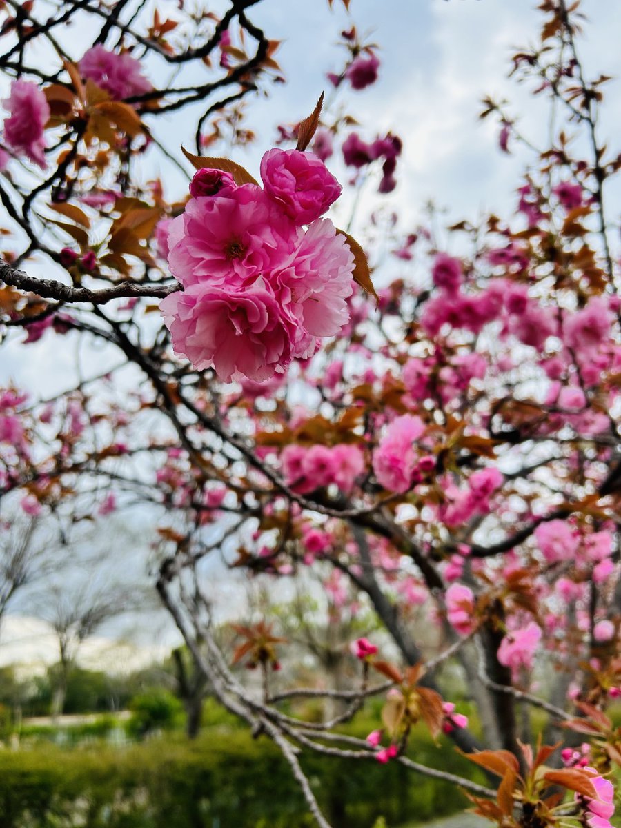 薄曇りの中、八重が咲き誇っていて気分が少し和らぎました。 八重は桜の中で一番好きなんです。 https://t.co/UqzDsANFr5