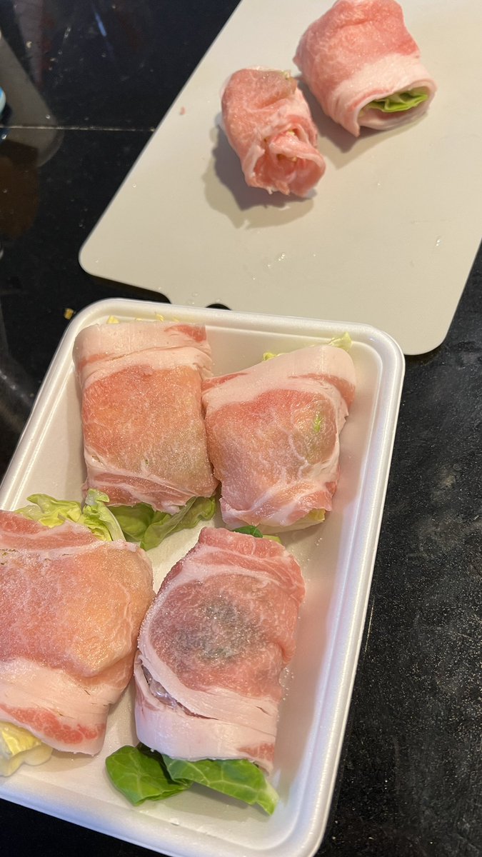 私が春キャベツの豚肉巻きを作っている世界線。朝、NHKでやってたからものは試し。 さーて、バラバラにならずに焼けるでしょうか!? https://t.co/ZAWUQJtKcE