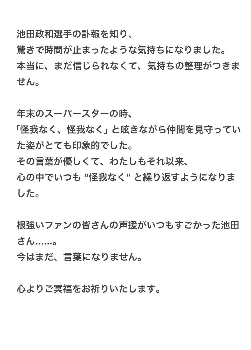 気持ちがまとまらないので、 全文は画像に載せます……。 心よりご冥福をお祈りします。 https://t.co/TWG44EWo9H https://t.co/XcJVdNBkPm