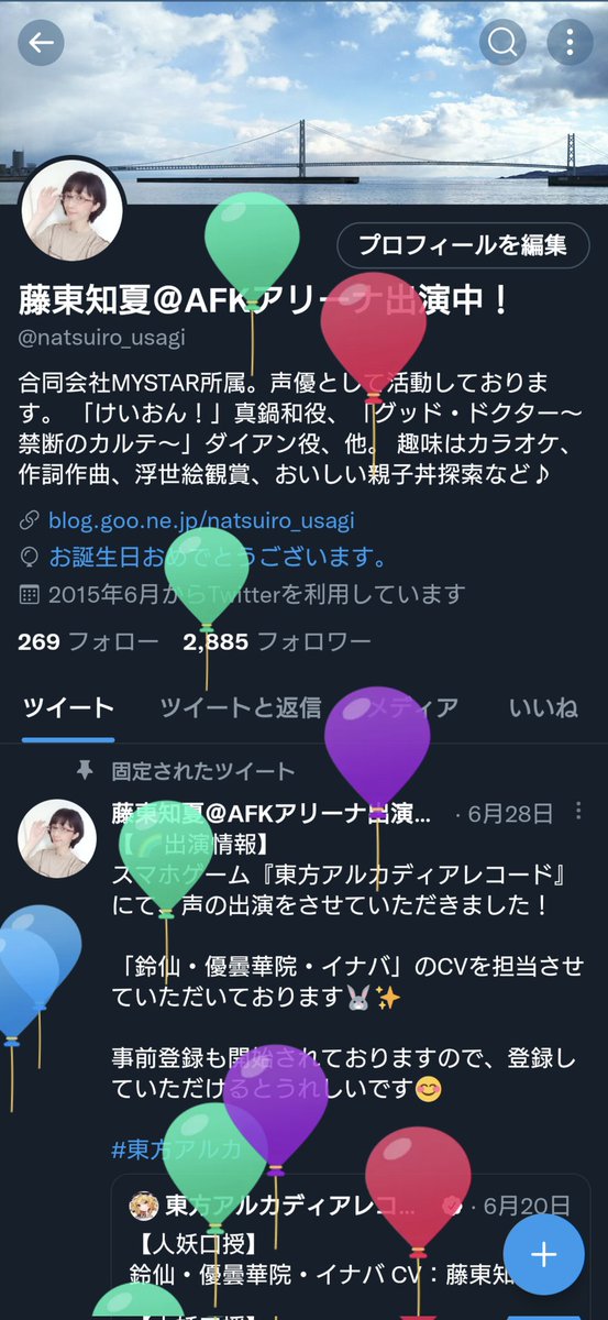 — 藤東知夏@AFKアリーナ出演中! (@natsuiro_usagi) 2022年6月28日