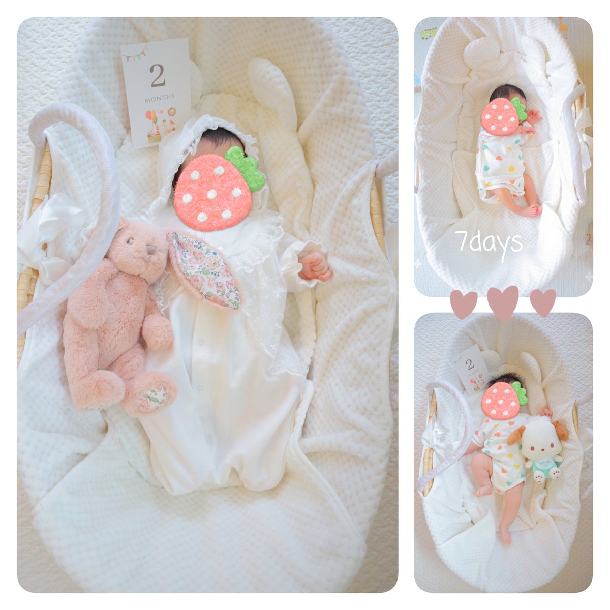 娘、生後2ヶ月になりました🌼 むちむち元気に育ってます🍓 にこっとしてくれることが増えたよ🫶🏻 無限の体力と背中スイッチを何とかする魔法がほしいです🧙♀️✨🪄 https://t.co/rTK3hNaXlD