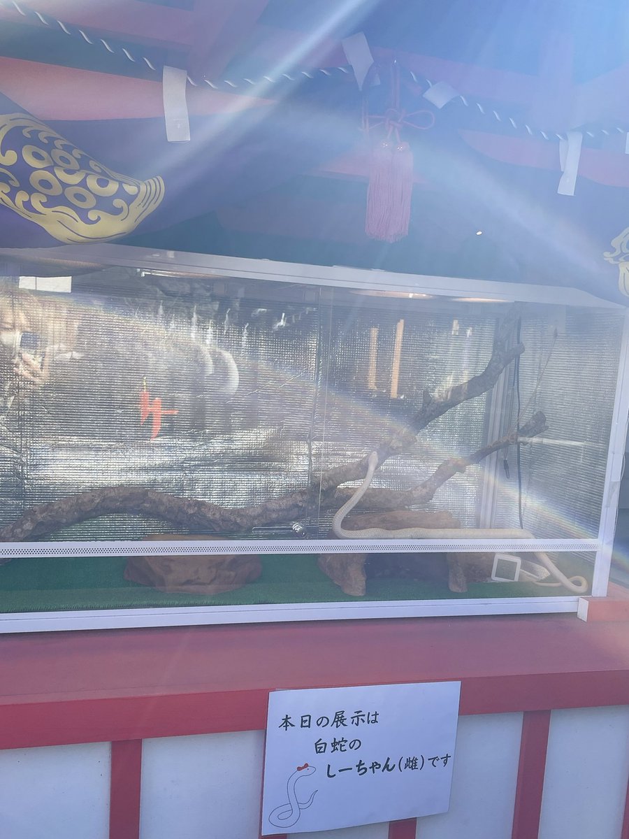 こないだ白蛇さんが展示されている蛇窪神社へ行って来ました🐾境内に蛇のオブジェがたくさんあったり花手水が綺麗だった🐍⛩参拝後に蛇の指輪の尻尾部分が折れちゃって脱皮したのかと思った😂 pic.twitter.com/13NMVIsKwK