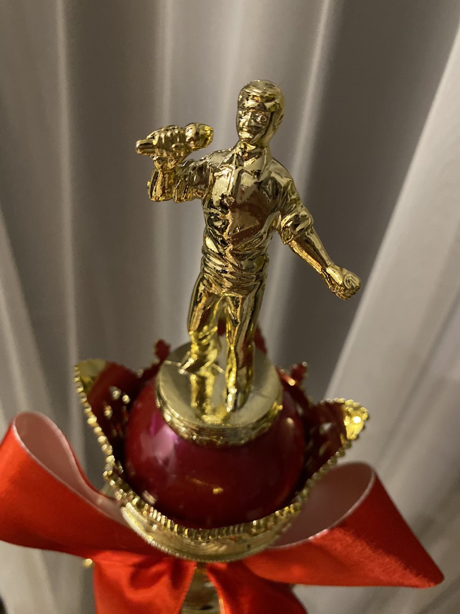 出てきた瞬間、自分への贈呈品と気付けなかった特大トロフィー🏆このサイズに見合うスケールの人間になります。 #マイク持ってた🎤#犬小屋のとなり #バラダン https://t.co/eIdQR4GMYw