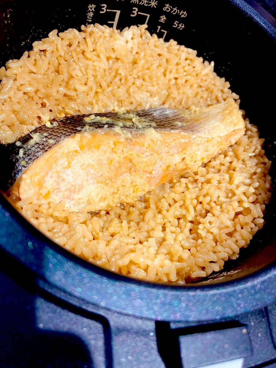 久し振りに高浜商店さん@kujira_takahama の銀鮭の西京漬けで炊き込みご飯🍚