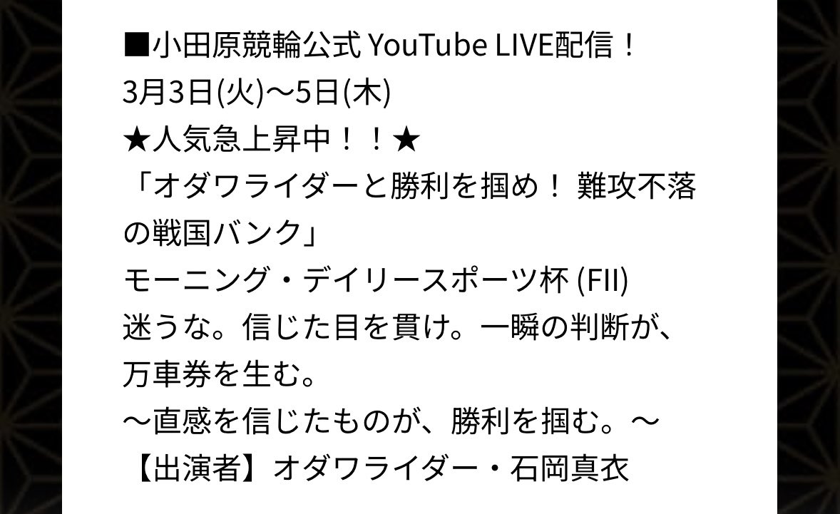 小田原競輪公式YouTubeに出演します🚴♀️