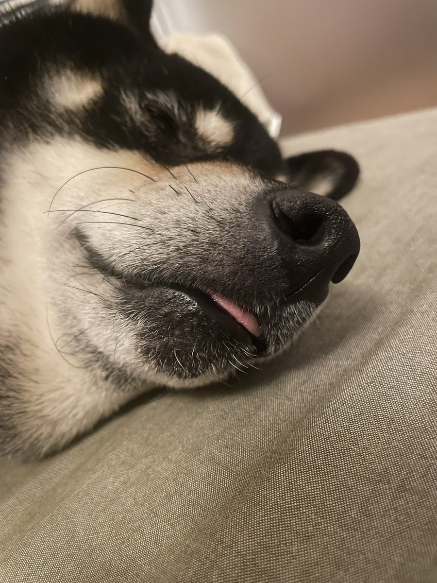 ちょっとだけ 舌をしまい忘れて寝てる小鉄くん。 かわいい🐕 #柴犬 #黒柴 #shibainu #舌をしまい忘れた犬 https://t.co/Je46R7isom