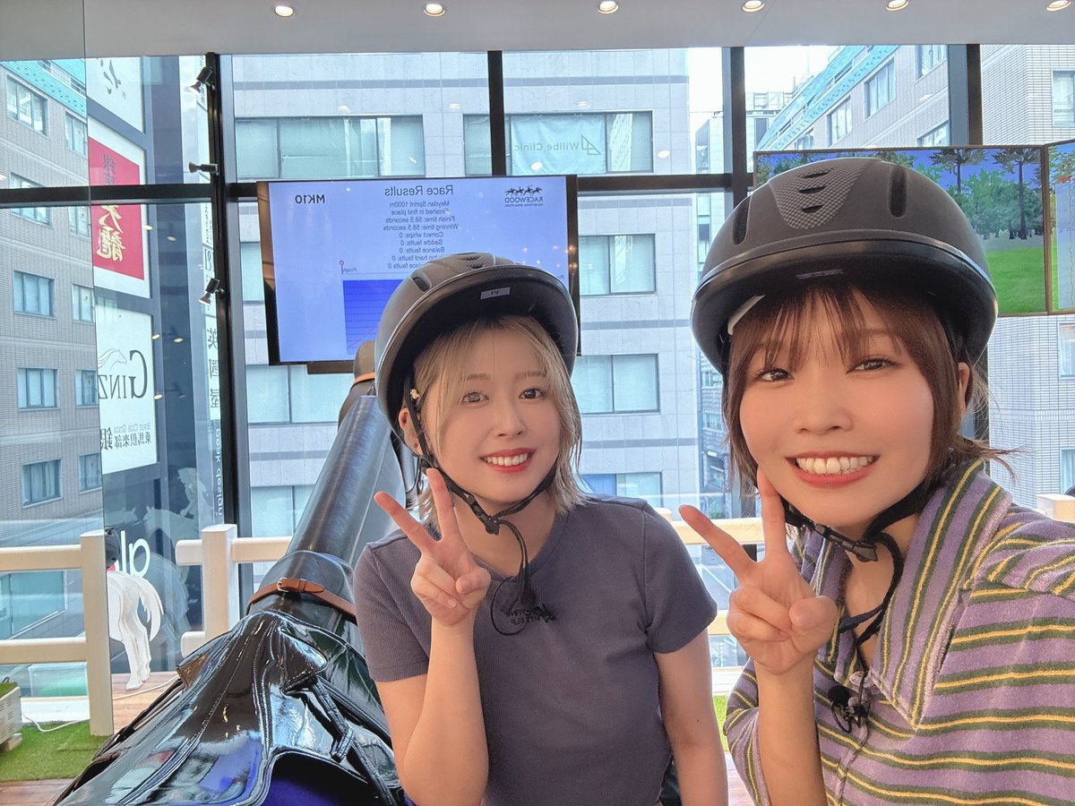 #うちロケ 第36回目、見てくれたかな?? 競馬場レースなんと一位?!🥇✨ でも体幹めっちゃ使って疲れた....😅 さくぴとわちゃわちゃ乗馬体験できて本当に楽しかったです! シューティングスターことシューちゃん、ありがとね...😆 まだ見てない方はぜひ見てくださいね! https://t.co/krwZk23kyO https://t.co/eqRLay7ZYZ