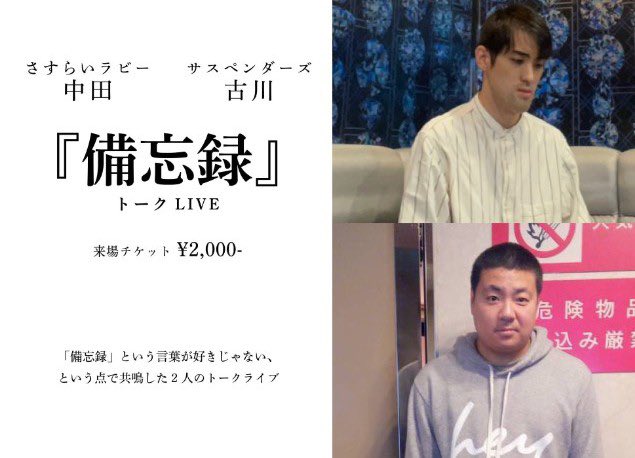 4/30(木) サスペンダーズ古川さんとのトークライブ備忘録!帰ってきた! 溜まっているものを!解き放つ! 予約は明日夜! https://t.co/DyDY2DgUWB https://t.co/331Jfw7LuK