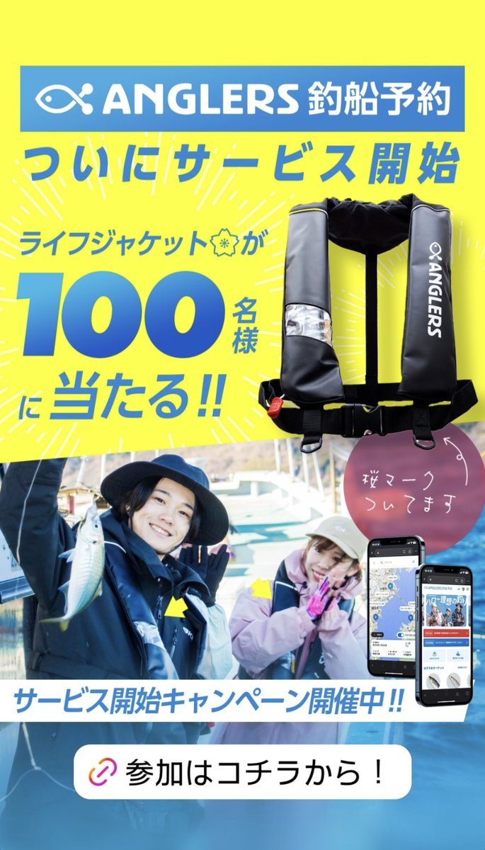 なんとアングラーズ太っ腹!! 船釣りに必須のライジャケが100名様に当たるチャンス! 万が一の命を守るライフジャケット。 船は桜マークの付いたものが必須なので、まだ持っていない方もキャンペーンに参加してみてください🙆♂ 僕のアングラーズもよろしくです!⬇ https://t.co/oiqHHfSSUh https://t.co/VOyopjWLrw