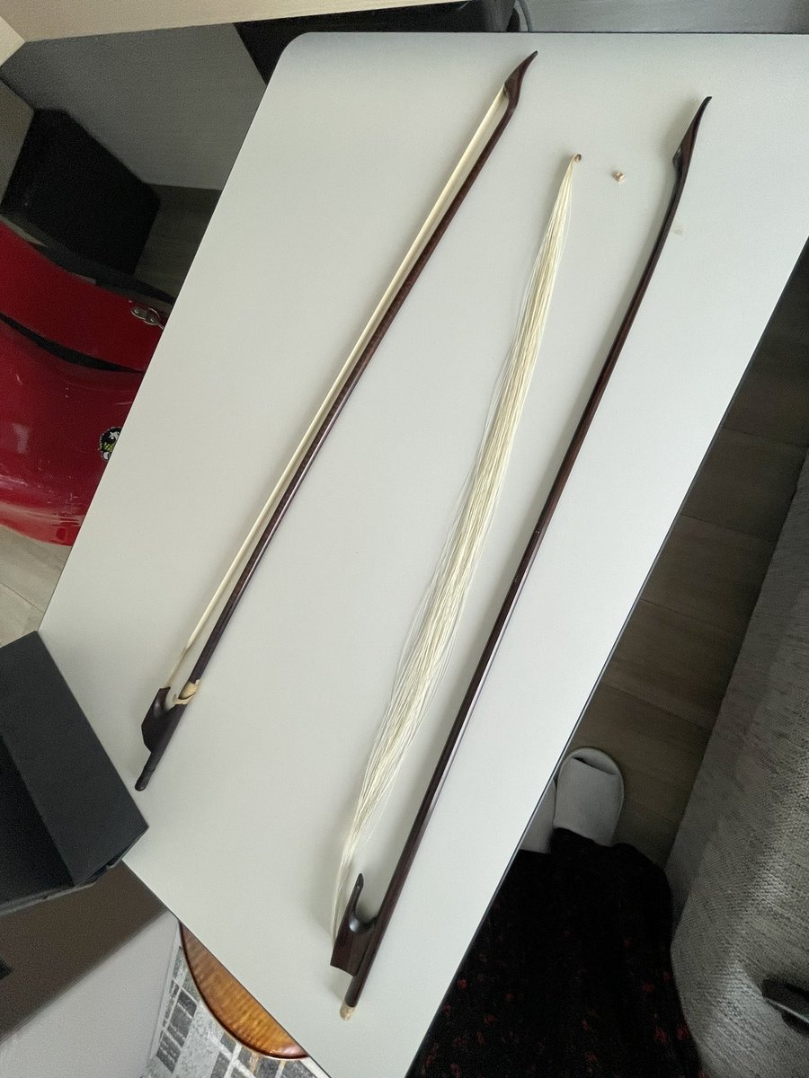 うーんと🥲、、 受難節の時期にいつも急に取れちゃうんだけれど、 この弓なにかおまじないでもかかってるのかな?✝️ 😑🥲 ♯ホテルで弾いてたら取れた 今日は左のもう一本で弾きます。。 https://t.co/2DjYjxip2W