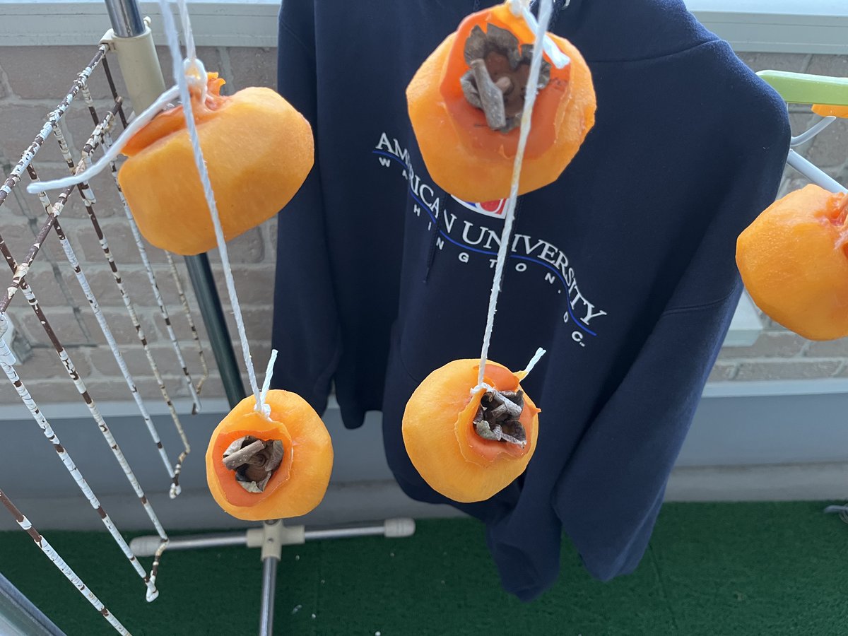 吊るし柿。鳥よけに服をかけましたが・・・時間の問題ですかね。 https://t.co/UJ1yVob8rv