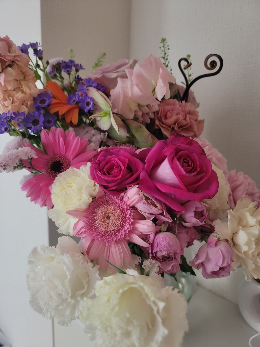 お花をそれぞれの友達にいただいたんだけどどれもピンク系ばかりw 私の好きな色はピンクなんだけど みんなわかってるー❤️❤️❤️ https://t.co/RnO9U00VKs