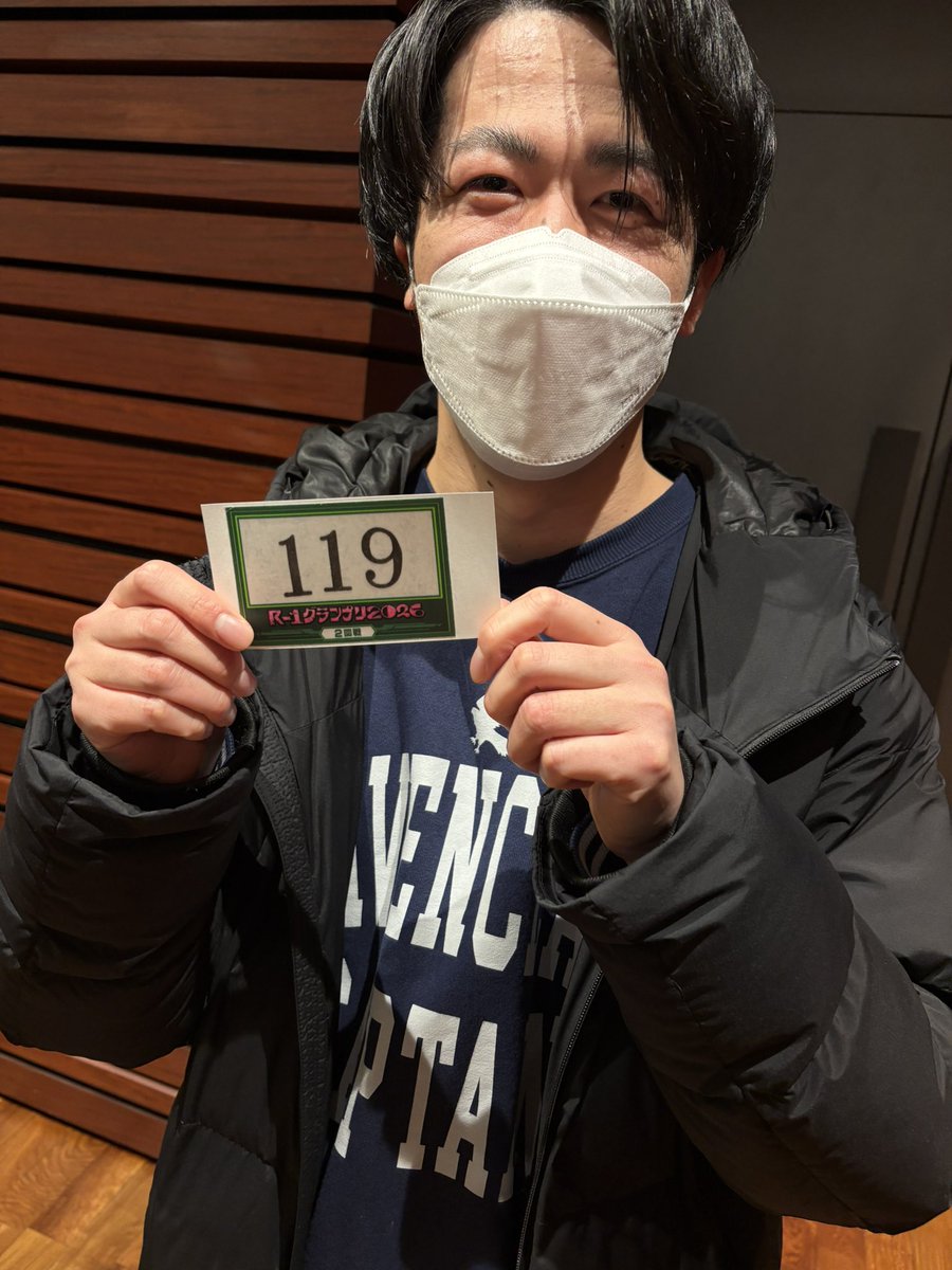 R1グランプリ準々決勝お疲レスキュー!! 緊急事態が発生し、客席から『頑張れ!』 って声援が届き意識を取り戻しました、 誰かさん、ナイスレスキュー!! もうポジティブに行かせてください! そして谷口つばさくんから エントリーナンバー119をいただきました!!!! お疲レスキュー!!! https://t.co/1GgLHyuZut