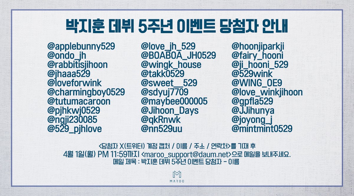 PARK JIHOON HAPPY DEBUT 5th ANNIVERSARY EVENT 당첨자 안내
