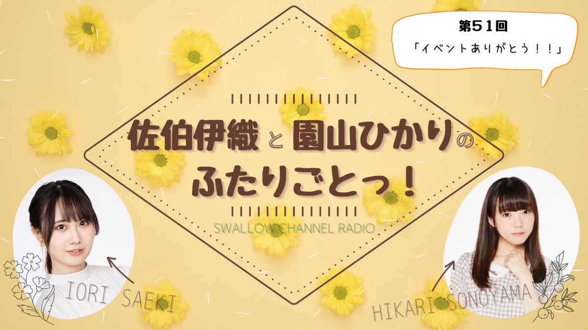 「佐伯伊織と園山ひかりの #ふたりごとっ!」第51回もスタートから安定のゆるさでお届けします。 安心してください。50回超えたとて我々はこうも変わらん。 👧🏻https://t.co/auseqgisOQ https://t.co/DPrIoVCb0n