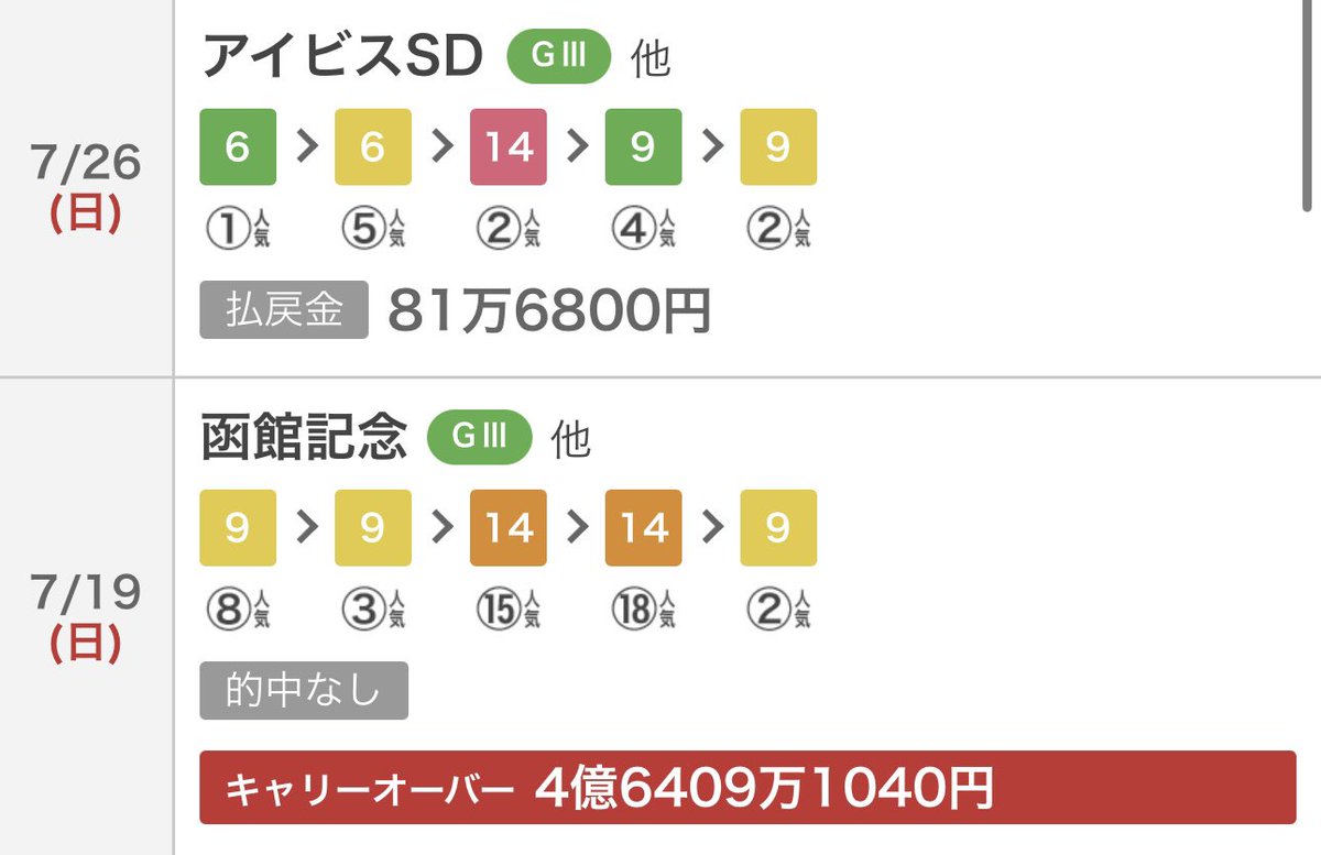 いやダメだ!!! ここ10年ぐらいのWIN5の結果データをさかのぼってみたけど、キャリーオーバー後に1億当たった結果がない。。。 WIN5で一億当てるには2レース以上荒れるレースがあるかないかだ!!! 明日が荒れるかどうかの2択の博打をまずしなきゃいけない。 #1億当てたいデカキン https://t.co/rBdZTM393X