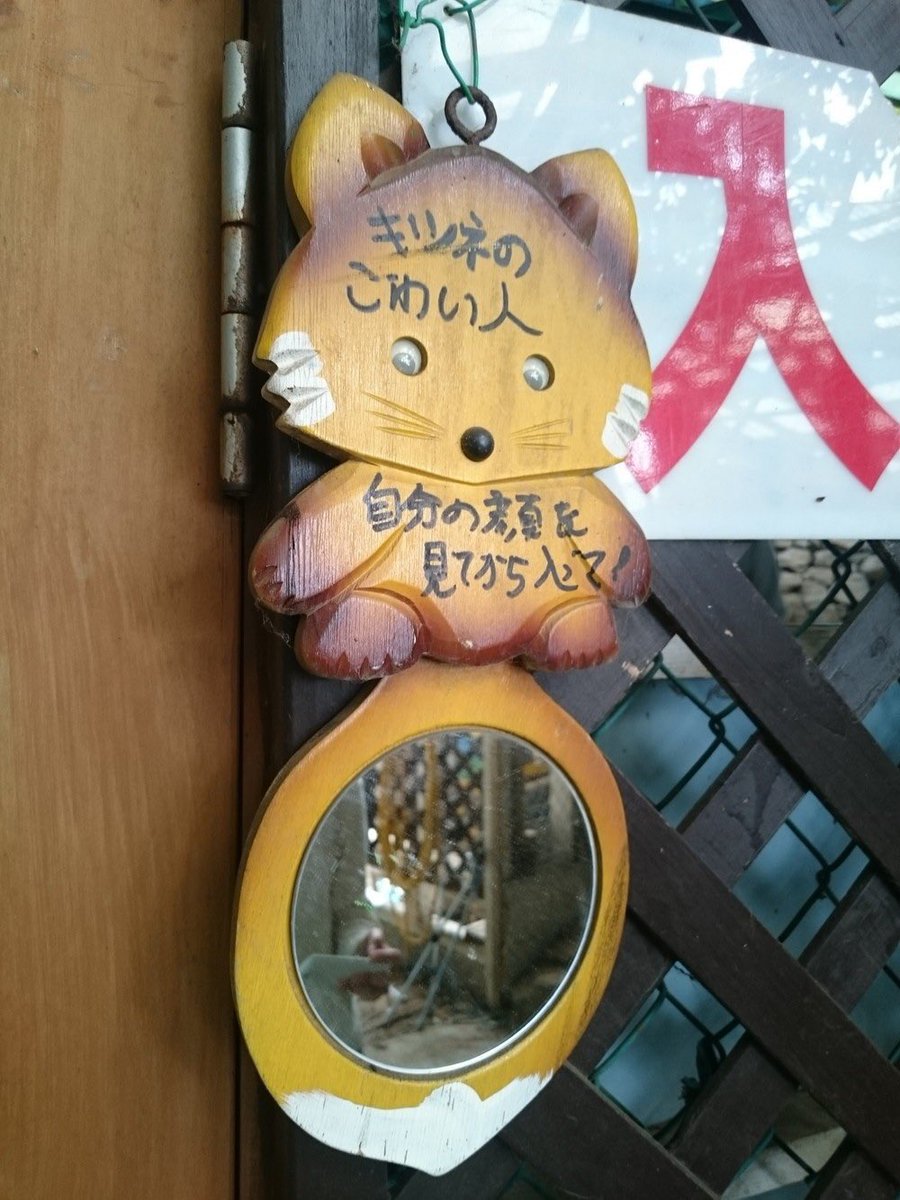 蔵王キツネ村の放し飼いエリアの入り口には、自分が平気な顔をしてるかチェックするための鏡がある。 pic.twitter.com/mdlZMmkAtd