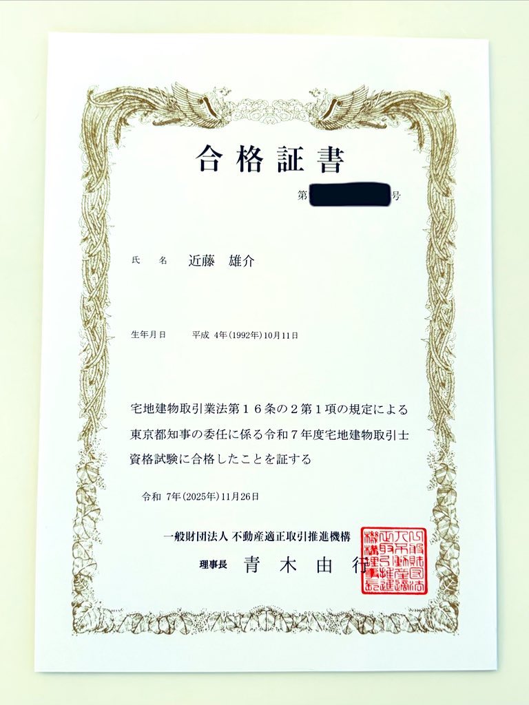 今年の宅建試験、無事に合格しました! 実は2度目の挑戦だったので素直に嬉しくて、そしてホッとしました。 受験された皆さん、本当にお疲れさまでした。結果に関わらず、あの勉強量とプレッシャーを乗り越えた時点で拍手です。 不動産が絡む作品があれば、宅建合格俳優の僕を使って下さい🙇♂️ #宅建