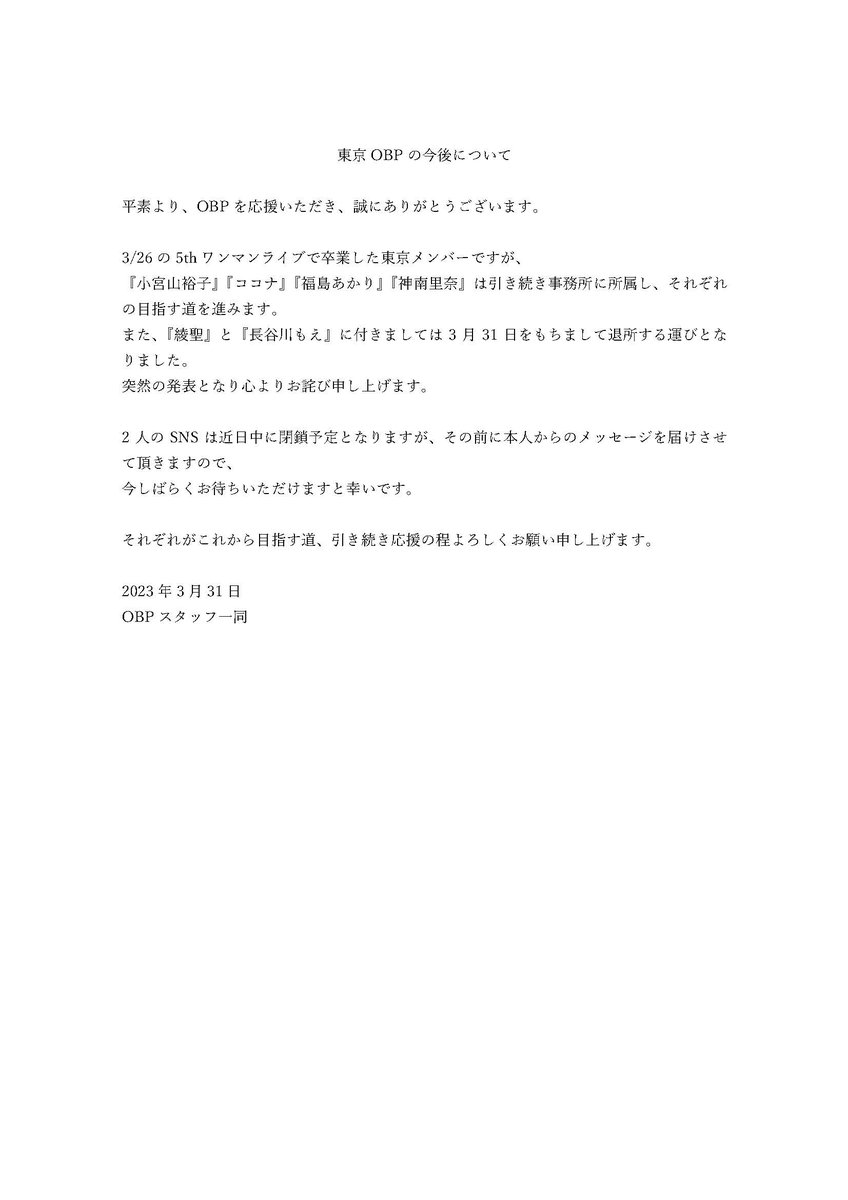 — OBP(アイドル) (@info_OBP) 2023年3月31日