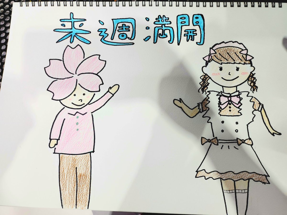 メ「お帰りなさいませ桜さま🌸」 さ「ただいま、今年も帰ってきたよ 来週にも満開かな」 明日と明後日は、メイドカフェがnbcにやって来ます! メイドさん素敵な方だった👀🎀 https://t.co/DMhoMAQJGh