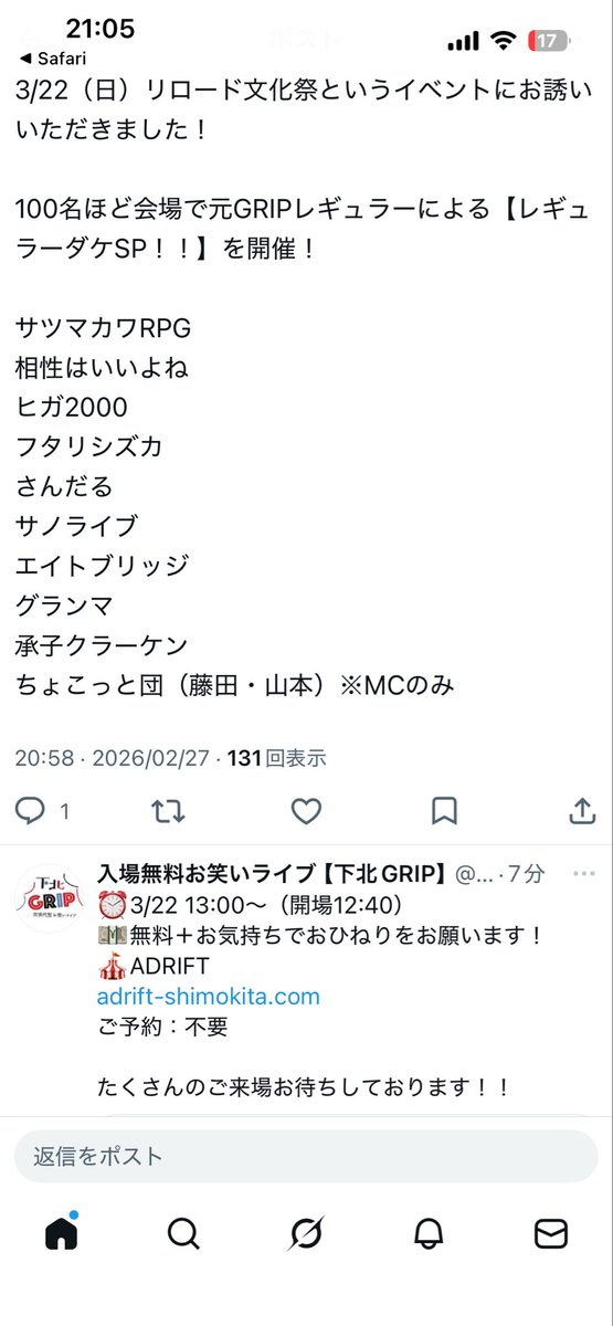 3月22日!下北沢で元グリップメンバーでライブです!🤗是非観に来てねー☺️ https://t.co/zSsrruHy91
