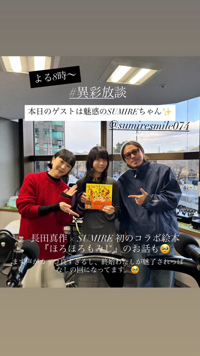 今日よる8時〜 InterFM #異彩放談 ゲストはSUMIREちゃん。 実は密かにずっと会いたかった方で🥹🥰 魅力満載、超イケボ、、終始素敵過ぎましたので是非聴いてくださいませ😘 #sumire #異彩放談 #佐藤菫 @hayashiteppei_ https://t.co/E83QdQQtPM